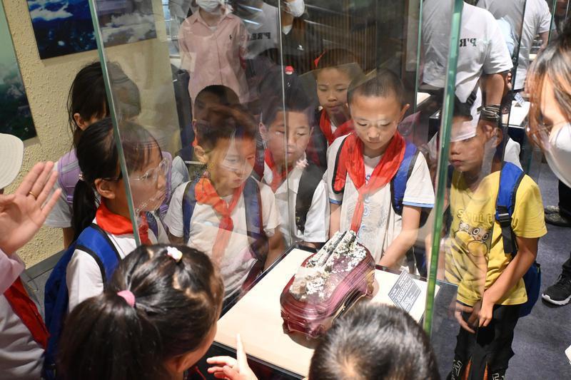 上午9:30,在志愿者的引導(dǎo)與陪伴下,土橋小學(xué)的師生們乘車抵達(dá)終南山世界地質(zhì)公園博物館,志愿者與景區(qū)專業(yè)講解員配合,借助科普視頻、豐富礦物標(biāo)本和趣味問(wèn)答等形式,生動(dòng)講述了秦嶺山脈的壯闊形成史與獨(dú)特地質(zhì)地貌知識(shí)。孩子們沉浸在這座“行走的課堂”中,親身感受著自然科學(xué)的無(wú)窮魅力。