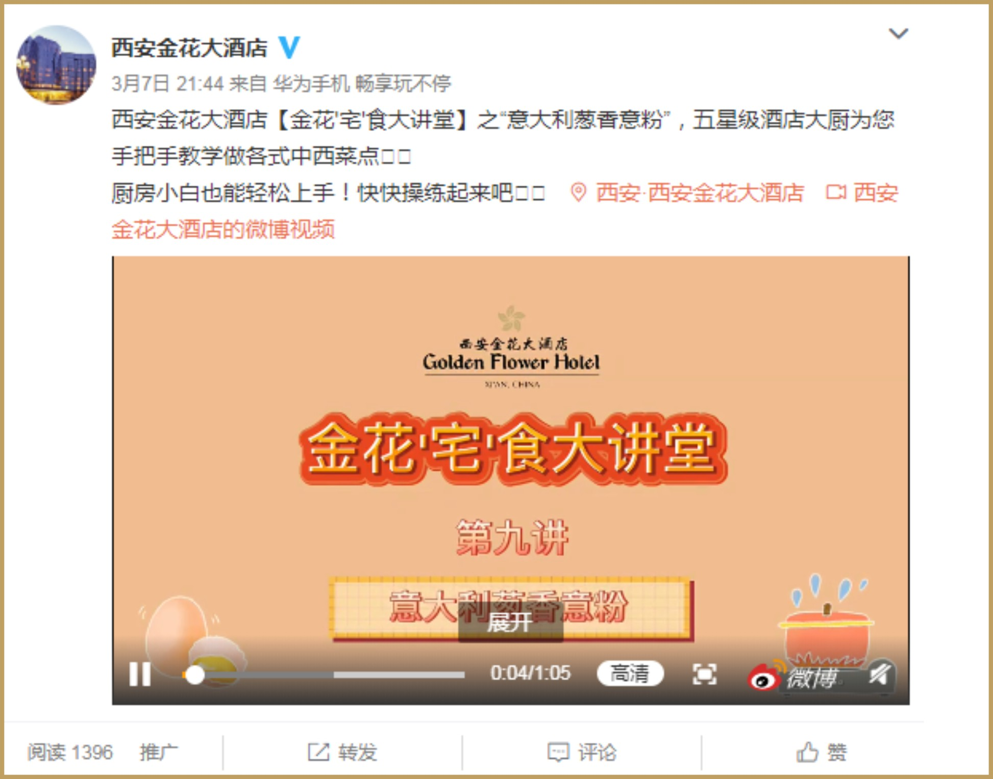 疫情期間,為了豐富百姓餐桌文化,提高居家生活質(zhì)量,讓廣大消費(fèi)者體味不一樣的人間煙火,金花大酒店推出的“金花宅食大講堂”系列公益節(jié)目,讓廣大消費(fèi)者足不出戶就能親手做出五星級(jí)酒店佳肴美饌。